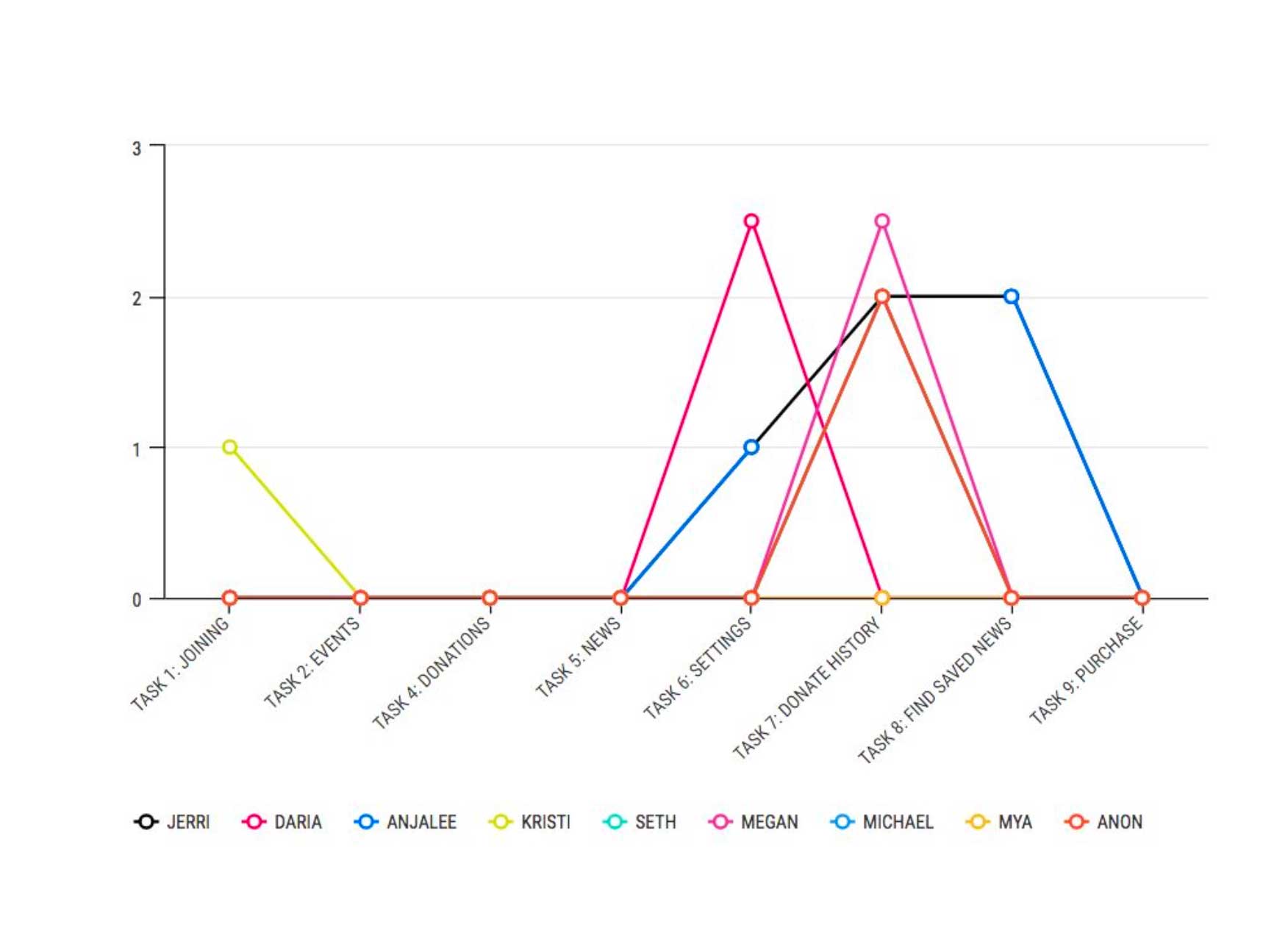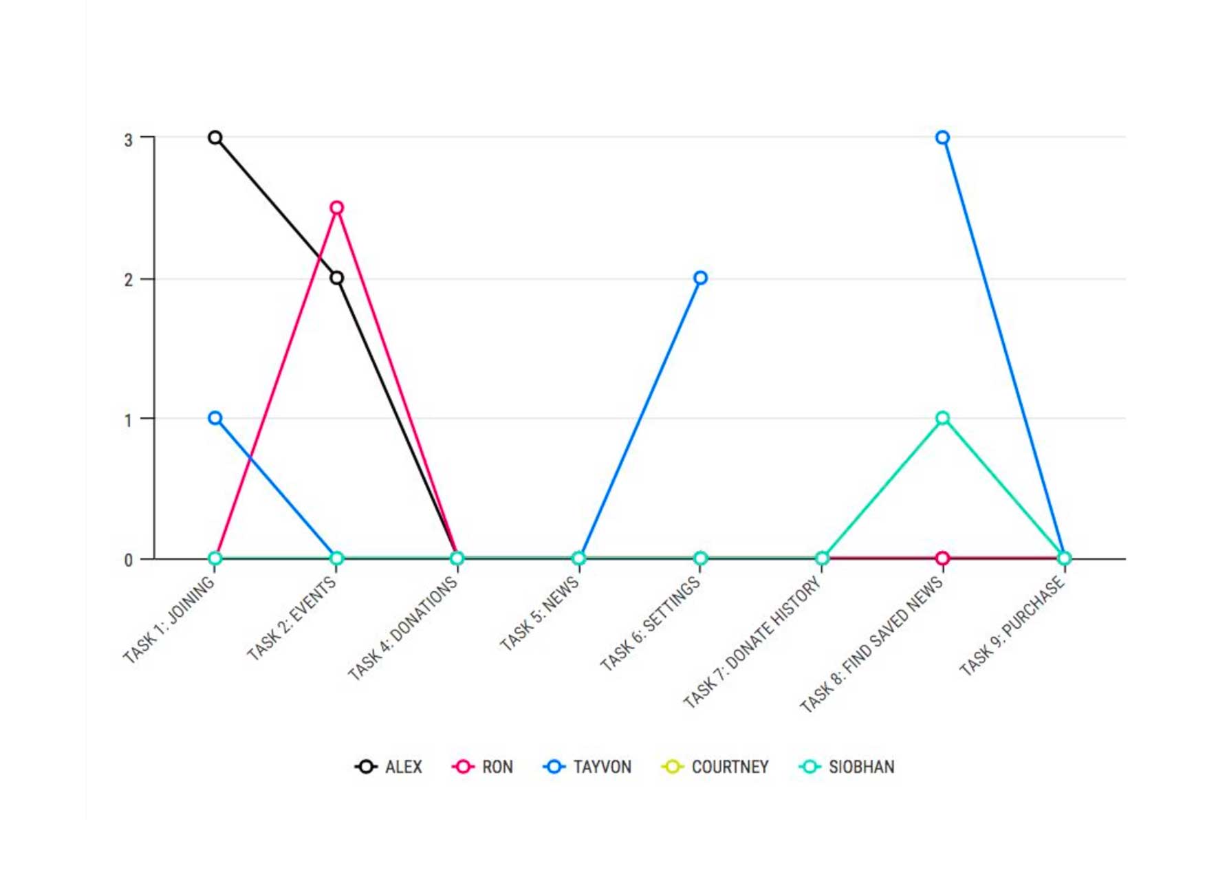 Next, we gathered more users to test the prototype on their computers, while a researcher watched and made notes on the difficulty of each task. The User Task Scenarios were as follows: