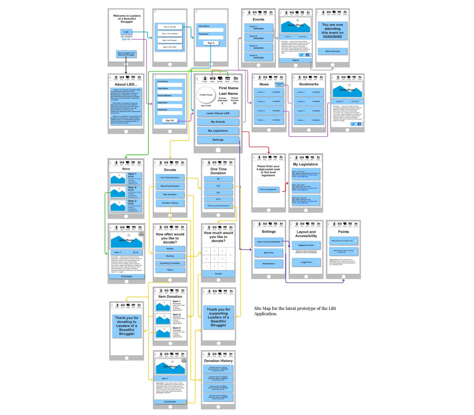 I worked with Baltimore nonprofit, LBS, a “grassroots think-tank which advances the public policy interest of Black people in Baltimore” to create an app concept that prioritized trust, accessibility, and engagement through light gamification. My work resulted in user testing sessions, paper to digital prototypes, and a final site map with 28 screen mockups.