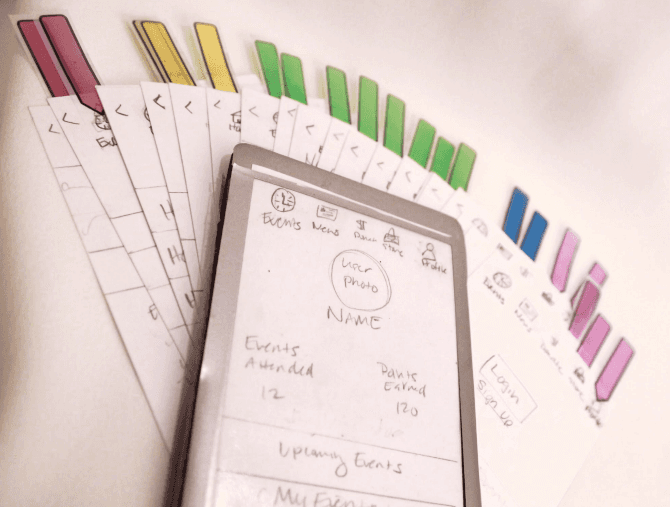 For the first phase of the design process, we chose to begin with making a paper prototype of the app. This way, we could get feedback that we could incorporate in real time, erasing and revising as we went to remove friction for the next user. The prototype had multiple pages that we could insert and remove with each "click".