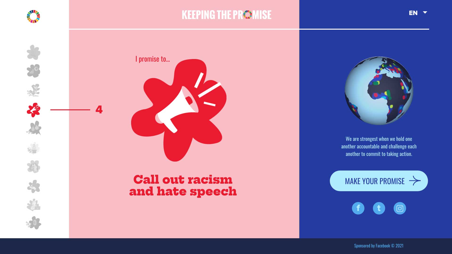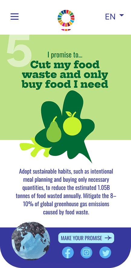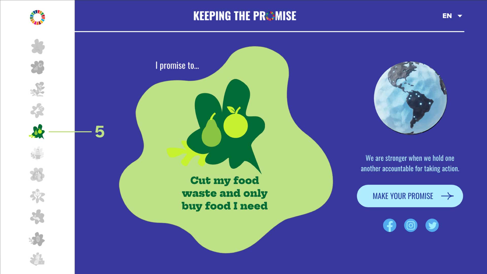 The United Nations General Assembly asked my team to design and develop a microsite for its Keeping the Promise campaign. The campaign goal was to set the world on a more equal and sustainable path. My team partnered with the UN to develop a clear strategy for getting user engagement through the microsite.